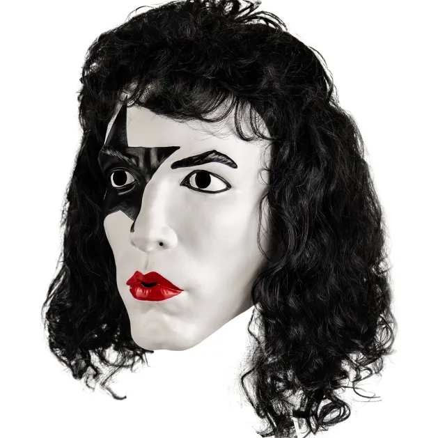 Trick or Treat Studios is proud to present the officially licensed KISS – The Starchild Deluxe Injection Mask. This deluxe face mask is made of rigid plastic sculpted and painted to look exactly like TheStarchild on stage! The mask has an elastic strap to comfortably hold it in placewith a styled wig attached to the mask for full coverage and easy wear